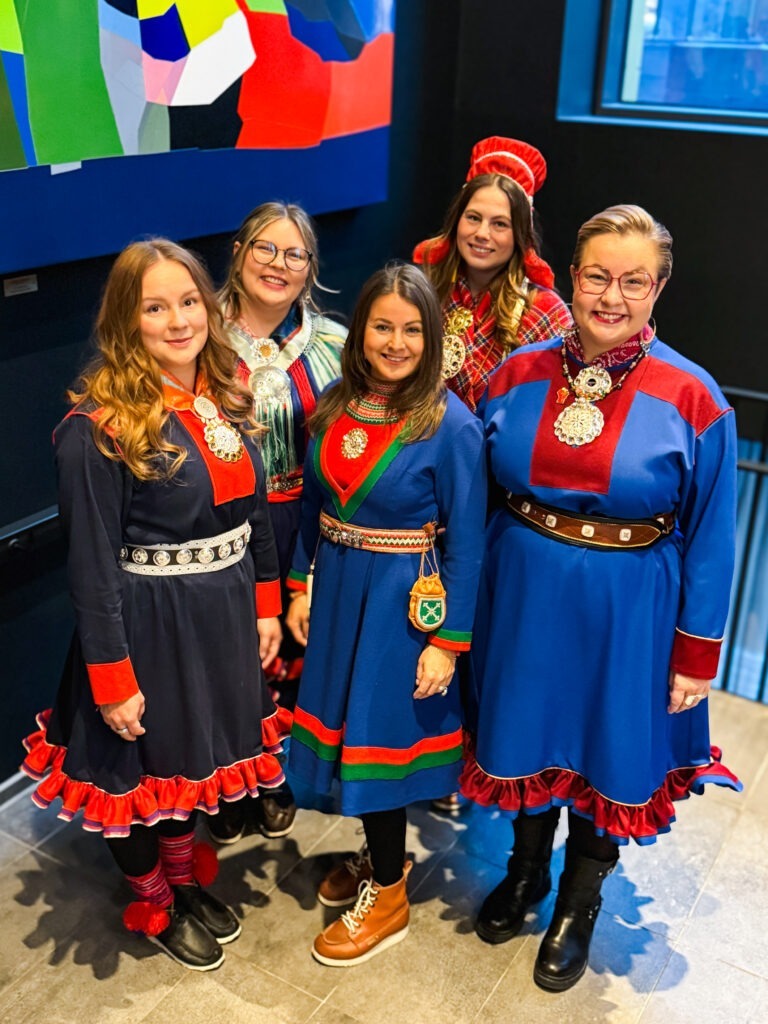 Bildtext: Sápmái Buorrin projektgrupp består av projektledare Enni Similä (FI) samt projektrådgivare Emmi Nuorgam (FI), Sanne-Ristin Bengtsson (SE), Johanna Tjäder (SE) och Mariann Josefsen (NO), som arbetar över nationsgränserna i Sápmi.